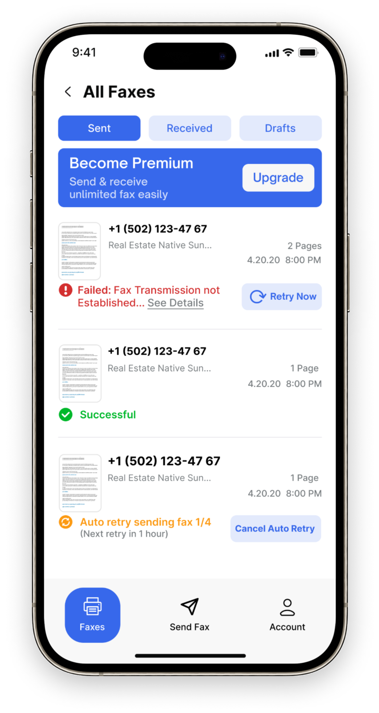 FaxUP allows you to send and receive faxes directly from your mobile device. Simply download the app, and start sending and receiving faxes instantly.