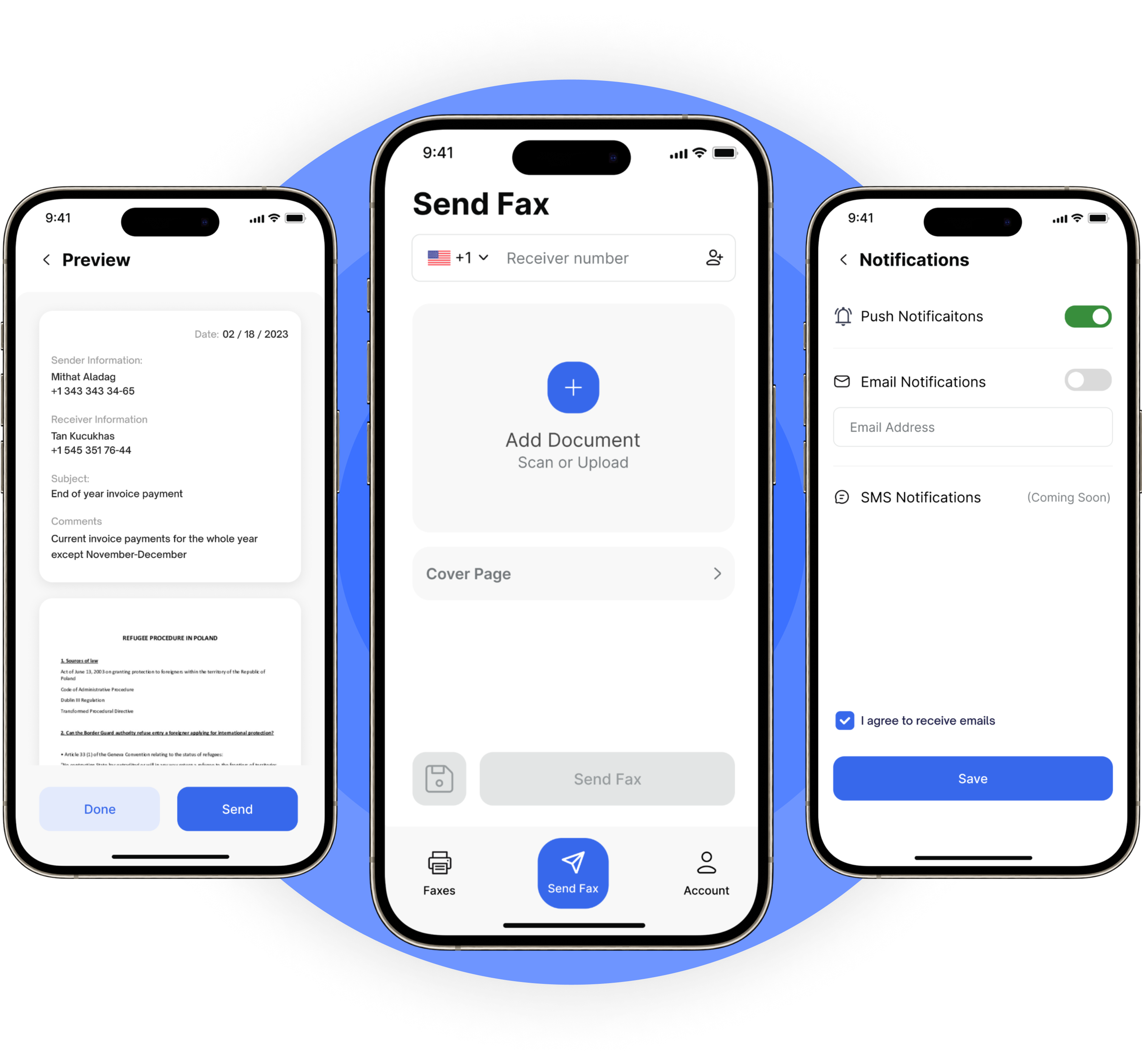 Send and receive faxes directly from your mobile device, anytime, anywhere.